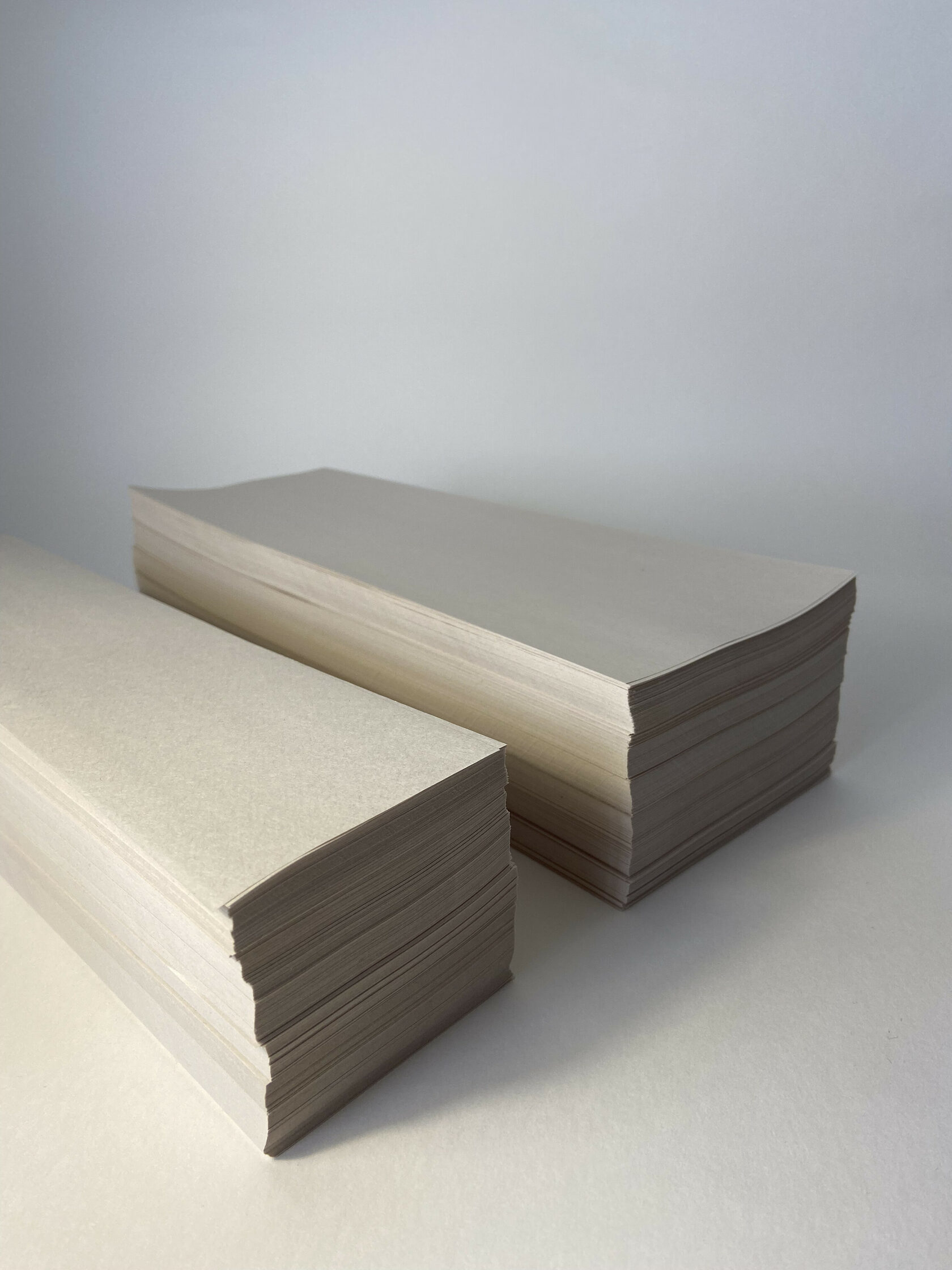 Следом два слоя упаковочной бумаги, на которую мы с любовью ставим свой логотип.